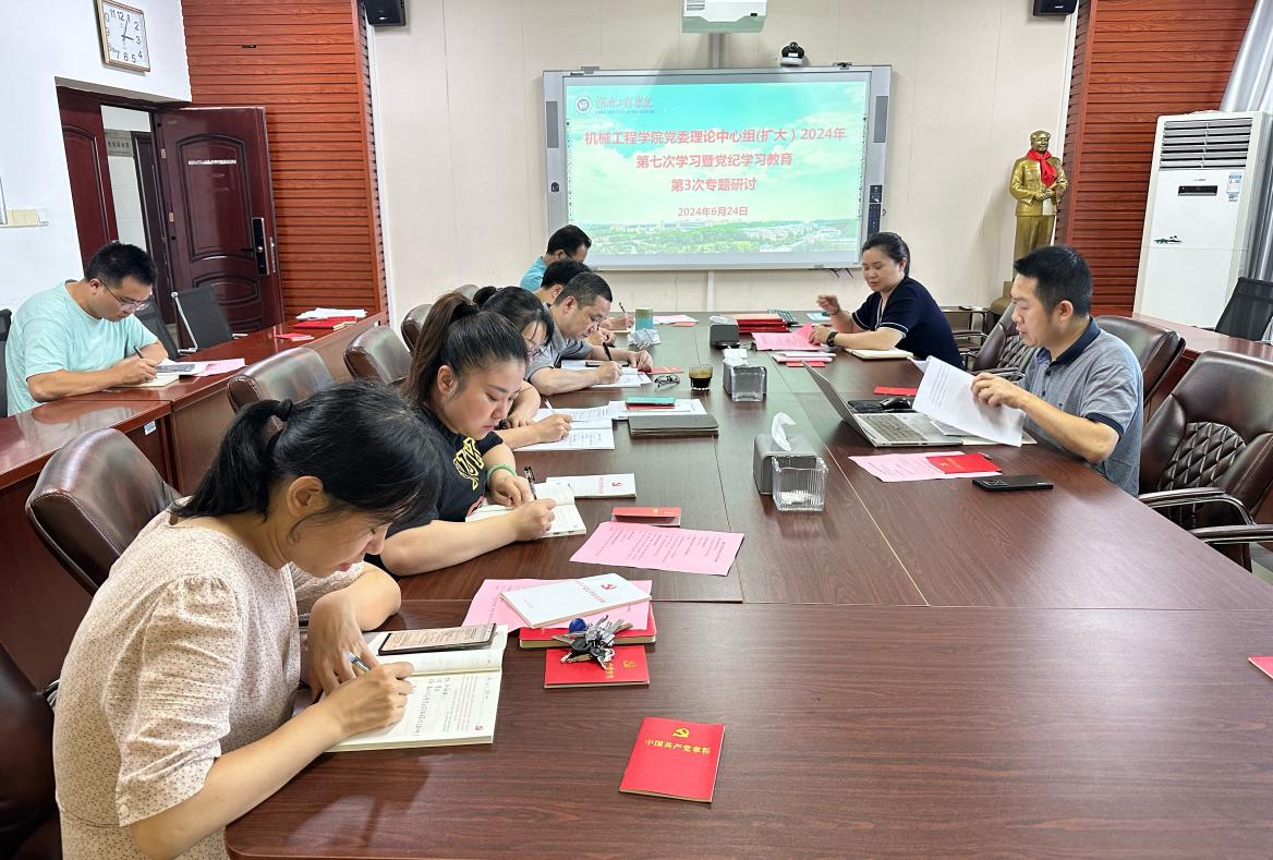 6月24日下午,太阳成集团tyc33455cc党委理论学习中心组(扩大)在机械楼311开展2024年第七次集中学习暨党纪学习教育第三次专题研讨。学院党委书记覃波主持学习。学院党委副书记、院长陈国强,学院党委理论学习中心组成员,专职组织员,支部书记参加学习。
