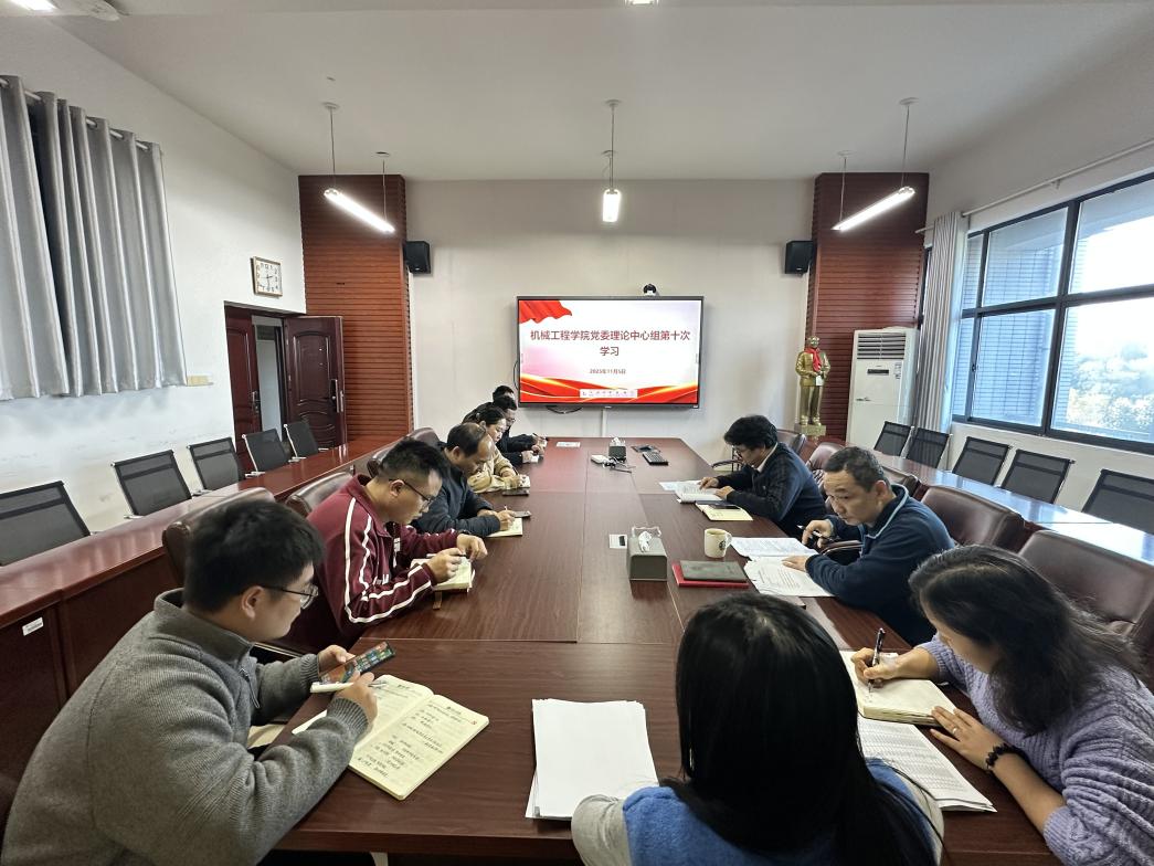 11月5日下午,学院党委理论学习中心组2025年第十次(扩大)学习会议在机械楼311会议室举行。学院党委书记、院长邹鸿翔主持学习。学院党委理论学习中心组成员、各党支部书记参加学习。