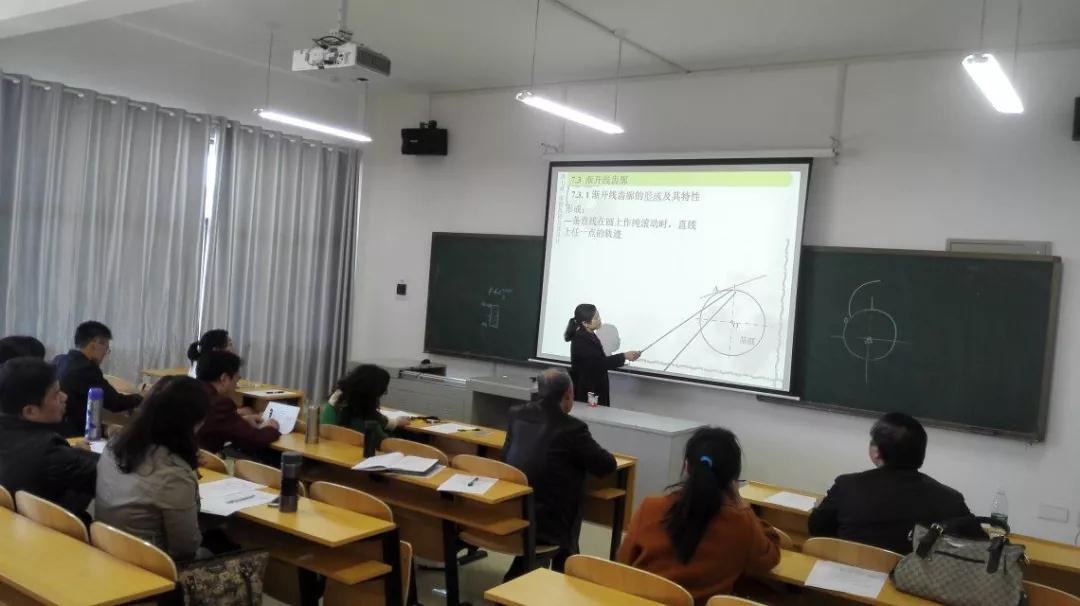 王先安对本期教研室教学观摩活动内容进行了介绍。程玉兰、皮益霞、汤芸三位老师分别进行了相关课程的示范教学。程玉兰对《互换性与技术测量》第三章“几何公差”中形状公差带部分的知识进行了生动的阐述;皮益霞讲授了《机械原理》第七章“齿轮机构及其设计”中渐开线齿廓相关内容;汤芸详细介绍了《工程制图》第六章“断面图”中断面图及其画法相关知识。听课老师分别对三位老师的授课进行点评,肯定其优点的同时也对不足之处提出了合理建议。