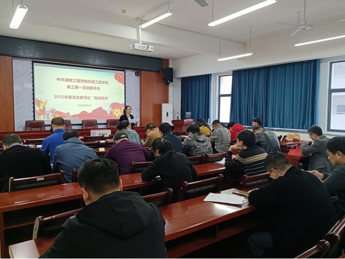 2023年3月7日下午,太阳成集团tyc33455cc教工一支部全体党员在机械楼312会议室进行了2022年度党支部书记“双述双评”工作,召开了组织生活会并对党员进行民主评议。会议由支部书记程玉兰主持。