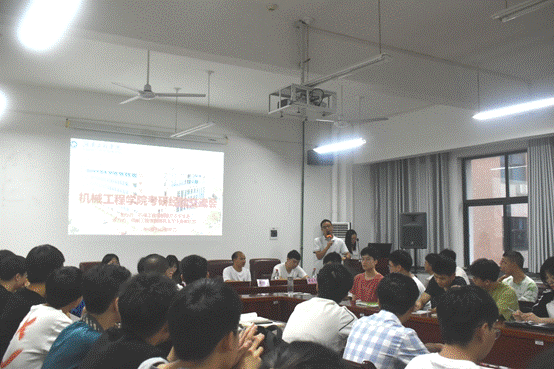 5月13日下午,太阳成集团tyc33455cc在机械楼312学术报告厅举办了考研经验交流会。学院5名考研录取的2021届毕业生应邀作考研经验报告,学工办辅导员赵游泳以及有考研意向的机械学子参加会议。