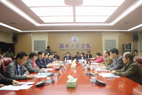 会议分两个阶段进行,第一阶段由易兵主持,校长刘国繁致辞,他在致辞中代表学校对全国工程教育专业认证专家来校考查和指导工作表示热烈欢迎和衷心感谢。他介绍了学校的基本情况,重点就我校工程教育面向行业企业、以学生为中心、以产出为导向,紧密对接市场需求进行教学模式改革的情况和取得的成绩进行了介绍。刘国繁表示,开展工程教育专业认证,有利于我们构建工程教育与行业企业的融合机制,增强我校工程教育人才培养对产业发展的适应性;有利于我们进一步推进学校工程教育改革,完善人才培养模式,进一步提高工程教育质量。他表示,此次认证对机械设计制造及其自动化专业和学校工程教育有着非同一般的意义,全校上下高度重视,全体师生将以饱满的热情、务实的工作态度认真迎接专业认证现场考查。