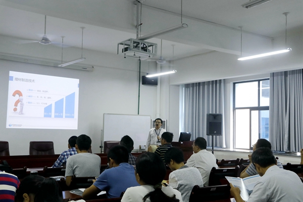9月12日,太阳成集团tyc33455cc特邀华曙高科培训工程师左罗在机械楼312会议室举行主题为“增材制造技术在工业中的应用”的讲座,学院院长魏克湘及部分老师聆听了讲座。