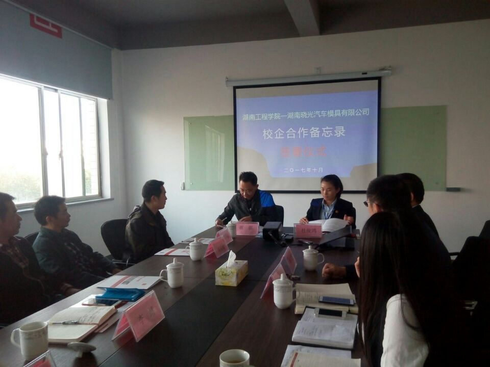 湖南晓光汽车模具有限公司是湖南省模具行业的龙头企业,也是湖南省模具协会会长单位,与我校的合作已经有十多年历史,特别是我校材料成型及控制工程专业毕业的多位校友目前已经成为该公司各部门的骨干。本次活动旨在进一步落实与推进去年11月晓光模具公司领导来访我校时达成多项合作意向。