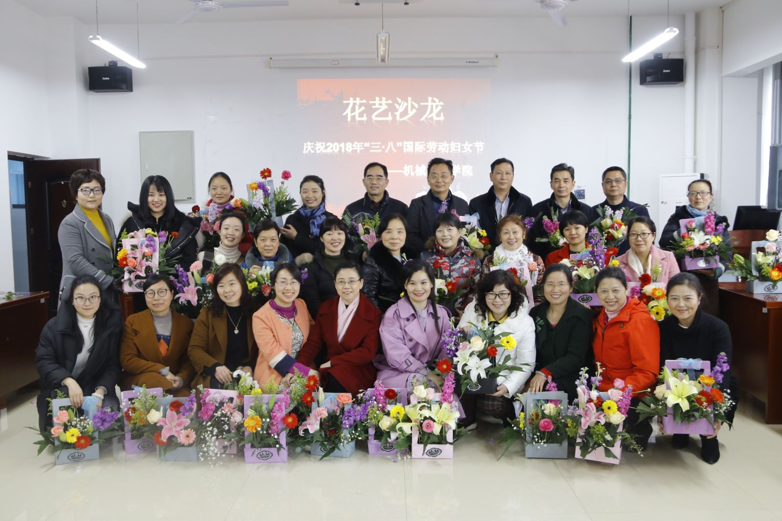 为庆祝2018年“三·八”国际劳动妇女节的到来,太阳成集团tyc33455cc于3月8日下午在机械楼312室举行花艺沙龙活动,活动由工会副主席范冬英主持,学院领导班子以及全体女教职工参加。