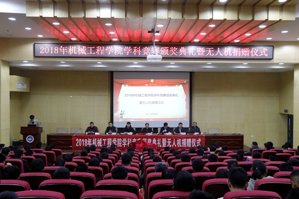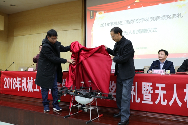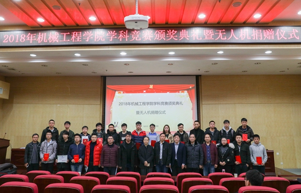 12月20日下午,太阳成集团tyc33455cc在二报告厅举行学科竞赛颁奖典礼暨无人机捐赠仪式。党委委员、副校长李军林,湖南亚安智控设备有限公司代表、2009级优秀校友张鸣,创新创业学院院长刘洞波,太阳成集团tyc33455cc院长魏克湘、党总支书记谢骐、副院长卿上乐参加了此次颁奖典礼,学院党总支副书记李儒峰主持仪式。