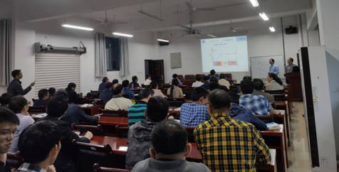 刘兰从“意义、原理、步骤、要求”四个方面向老师们讲述了“机构分析与机构运动简图测绘实验”。她通过介绍一般机械产品的开发过程中机构运动简图的重要作用来突出实验的意义,并以颚式破碎机为例详细讲授如何分析机构和测绘机构运动简图。