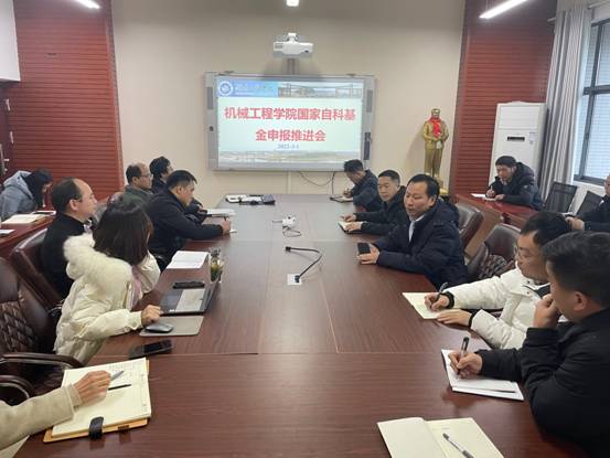 为推进学院2022年国家自然科学基金申报工作,太阳成集团tyc33455cc于31日下午,在机械楼311会议室召开2022年国家自然科学基金申报推进会。会议由学院院长陈国强主持,学校党委委员、副校长魏克湘和学院副院长邹鸿翔出席本次会议,学院拟申报国家自然科学基金的老师参加了此次会议。