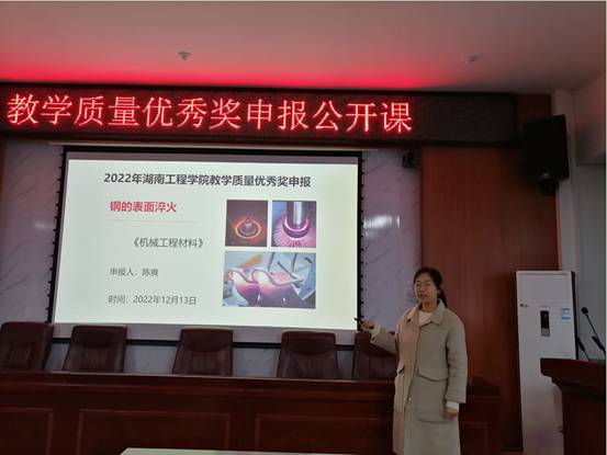 为全面贯彻党的教育方针,扎实推进素质教育,建立健全以全面提高教育教学质量为导向的教学管理制度和工作机制,认真落实进一步提高教育教学质量的实施意见,结合我院实际,太阳成集团tyc33455cc于2022年12月13日,在机械楼312会议室开展了“2022年教学质量优秀奖参选人公开课”活动。公开课要求授课老师说课5分钟,讲述一个知识点10分钟,合计时间不超过15分钟。公开课由副院长程玉兰主持。公开课的主讲老师为蒋嵘、陈爽、吴晨曦、李杰。学院全体教师到场参与听课与讲评。
