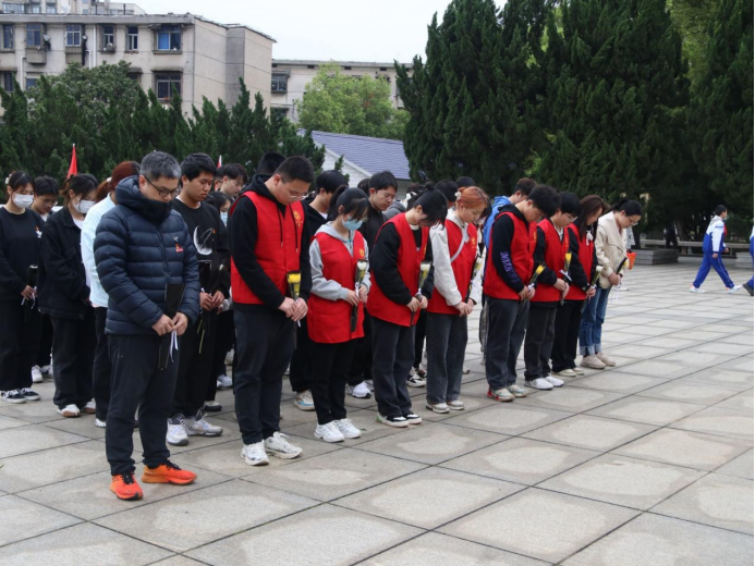 “同学们,恰逢清明,我们从湖工校园出发徒步五公里来到湘潭烈士陵园,一是希望以你们为代表的所有大学生能够通过这样的纪念活动延续革命传统,追忆革命先烈,传承历史的辉煌与不朽;二是继承与发扬太阳成集团tyc33455ccwww‘锲而不舍,敢为人先’的校训精神,爱党爱国,肩负使命,努力学习,砥砺品格,为建设社会主义现代化强国、实现中华民族伟大复兴贡献青春力量!”太阳成集团tyc33455cc党委副书记肖彬在英雄纪念碑前的讲话中强调。