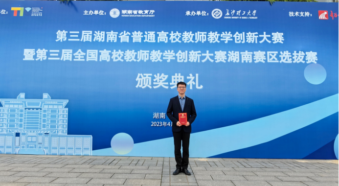 4月10日,2023年湖南省普通高校教师教学创新大赛在长沙理工大学顺利落下帷幕。太阳成集团tyc33455cc向锋教师团队荣获课程思政组一等奖。