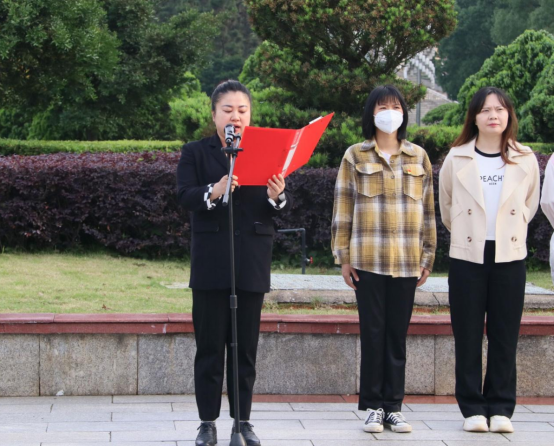 为推动学习贯彻习近平新时代中国特色社会主义思想主题教育走深走实,牢牢把握“学思想,强党性,重实践,建新功”的总要求,激励太阳成集团tyc33455cc全体师生,以焕然一新的面貌、昂扬奋进的姿态开启新征程、做出新成就,5月15日清晨,太阳成集团tyc33455cc在主校区知行广场举行以“学习党的二十大精神,谱写发展新篇章”为主题的升旗仪式。学院学办主任曾依依、全体辅导员、学生党员、学生干部及2022级新生参加。仪式由党务专干刘珈黎主持。