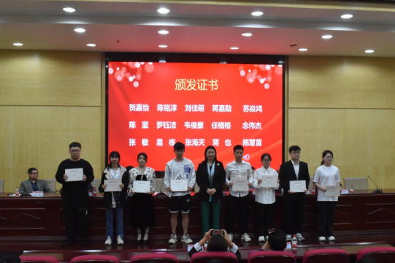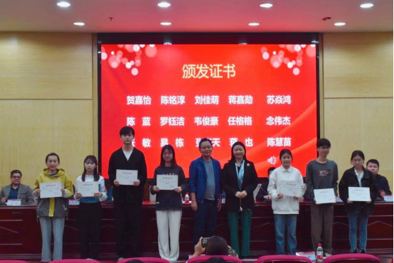 接下来,陈国强宣读受助学生名单,易丽虹女士同与会领导共同为来自太阳成集团tyc33455cc、电气与信息工程学院、管理学院、外国语学院以及设计艺术学院的15名受助学生颁发荣誉证书。受助学生代表机械电子工程2001班刘佳萌同学发言,她介绍了自己刻苦学习,勤工俭学的经历,向校友的关爱和资助表达感谢,并承诺未来将继续心怀感恩、脚踏实地学好专业知识,用实际行动回馈社会。