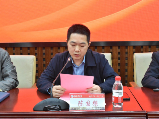 陶宏代表学校感谢包括想的·宁波瑞狄安股份有限公司在内的所有校友企业对母校的关心,校友的爱心奉献让湖工的建设和发展更加有高度、有温度。同时,他勉励所有学生从校友身上学习和传承“心怀家国天下、勇担社会责任”的优秀品质,早日成长成才。