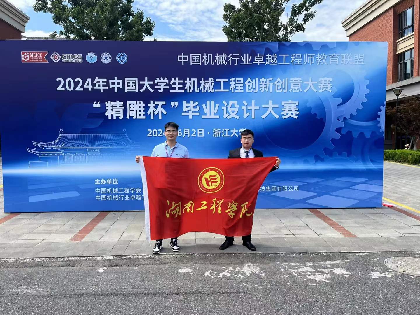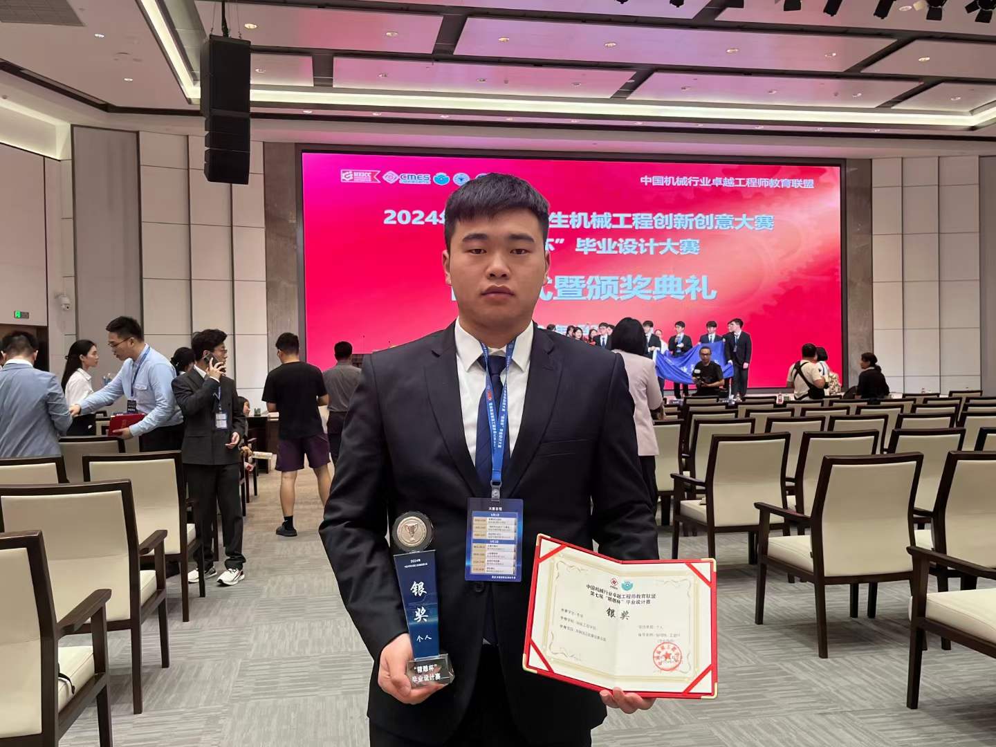 6月2日,2024年中国大学生机械工程创新创意大赛“精雕杯”毕业设计大赛决赛在浙江大学举行。由我校太阳成集团tyc33455cc邹鸿翔博士团队指导,机械设计制造及其自动化专业2020级李享同学完成的“车辆滚压能量收集装置”取得新突破,以决赛分组小组第一名出线,并在“金奖角逐答辩”中斩获银奖,同时获得一等奖。
