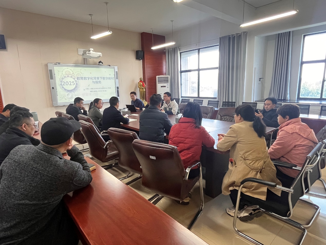 在研讨环节,与会人员聚焦数字教材建设的关键问题展开深入交流。陈国强就数字教材与纸质教材的推广差异、学习笔记数据存储、师生使用适应性差异及电子产品对视力的影响等现实议题与出版社专家交换意见。程玉兰则从应用视角切入,对比分析两类教材的优劣势,探讨数字教材发展趋势及师生使用痛点,强调技术赋能与教学需求深度融合的重要性。齐志刚积极回应讨论,并表示机械工业出版社愿意与学院教材出版展开积极合作。