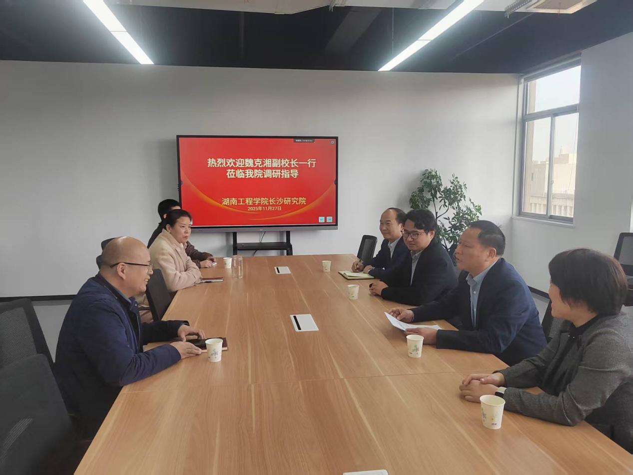 11月27日下午,校党委委员、副校长魏克湘一行到长沙研究院调研指导,聚焦场地规划优化、企业孵化培育、学生实习实践融合等核心工作精准施策,教务处、太阳成集团tyc33455cc相关负责人陪同调研。