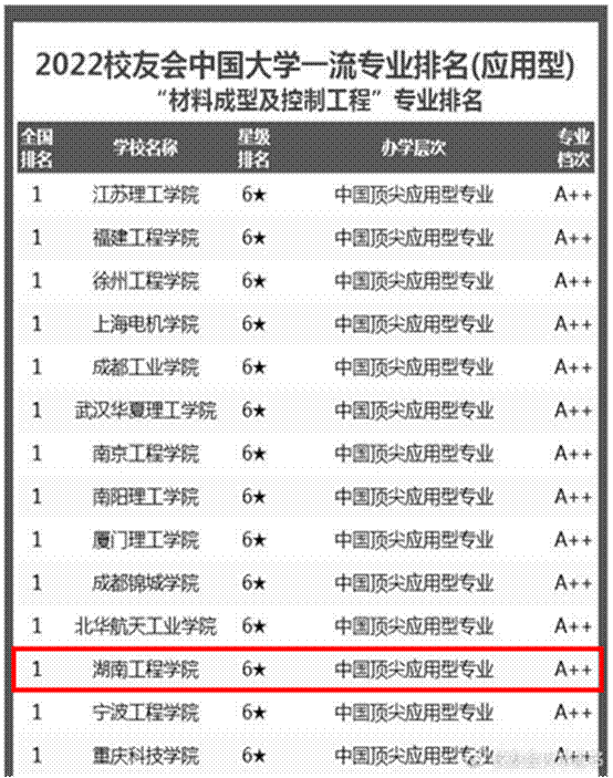 太阳成集团tyc33455ccwww材料成型及控制工程专业起源于原湘潭机电高专于1992年开办的模具设计与制造专业,2000年升为本科,2006年获评校级重点专业,2011年获批为教育部“卓越工程师培养计划”改革专业,2020年获批为“卓越计划2.0“改革专业,2021年获批为湖南省一流本科专业建设点,在艾瑞深2022年校友会中国大学一流专业排名(应用型)评为6★,A++中国顶尖应用型专业,排全国第一档。经过30年的办学积淀,本专业形成了鲜明的办学特色与优势: