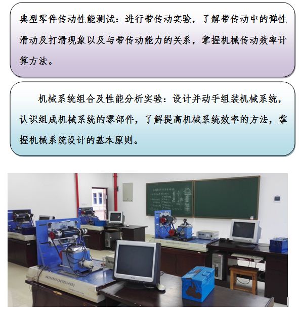 可开设实验:机械系统组合及性能分析实验、典型零件传动性能测试