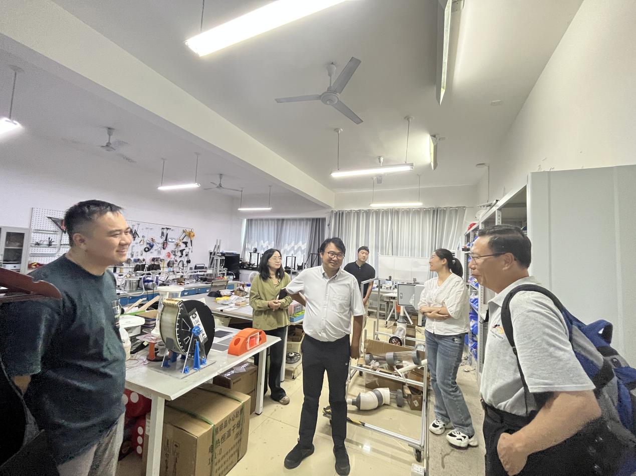 会后,邹鸿翔陪同刘克夫教授参观了学院实验室。邹鸿翔介绍了实验室的研究成果,还分享了学院在机械工程领域的前沿探索与技术创新。刘克夫教授对实验室严谨的科研氛围以及丰硕的科研成果表示了高度的赞赏,并期待未来能有更多的合作与交流机会。