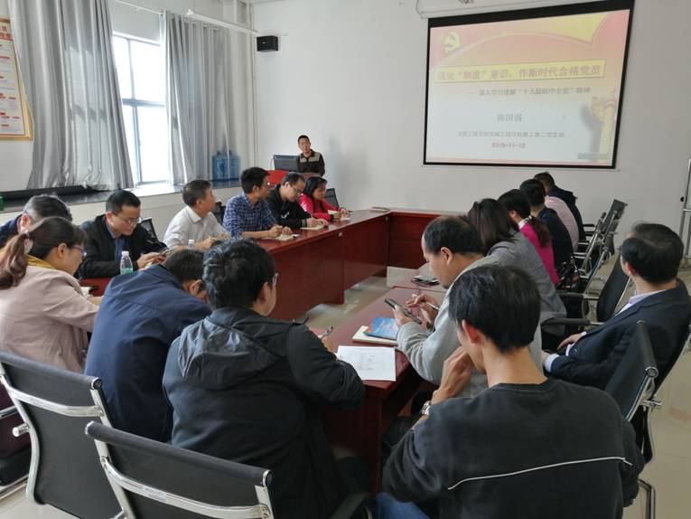 按照太阳成集团tyc33455cc党委的统一部署,11月12日下午,太阳成集团tyc33455cc教工第二党支部书记陈国强在机械楼308室为支部党员讲党课。