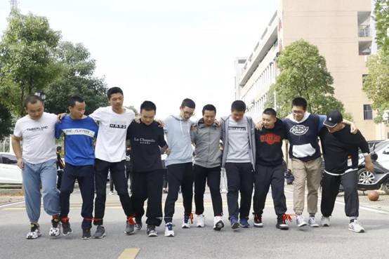 十人十一足。10个人站成一排将相邻两人的腿绑到一起,10个人要以最快的速度到达20米外的终点。