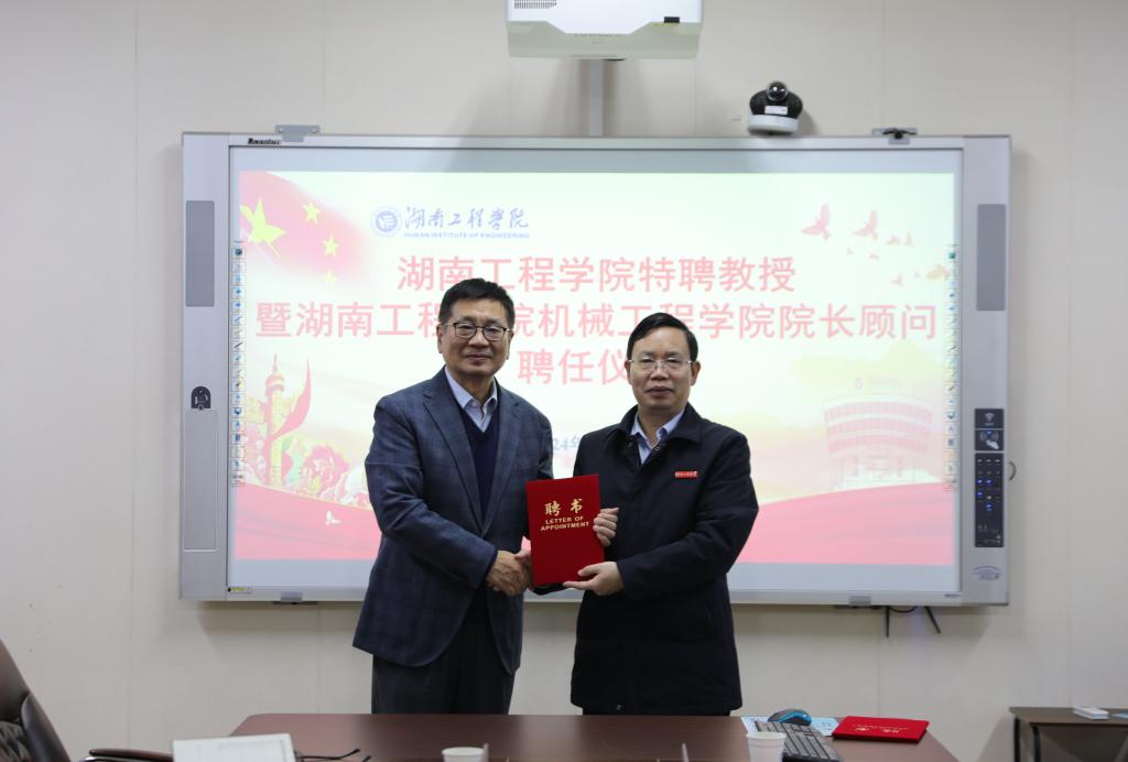 聘任仪式上,人事处处长、教师工作部部长阳海介绍了学校柔性引才政策及孟光教授的杰出成就与学术影响力。随后,黄昕代表学校向孟光教授颁发了特聘教授聘书和顾问聘书。