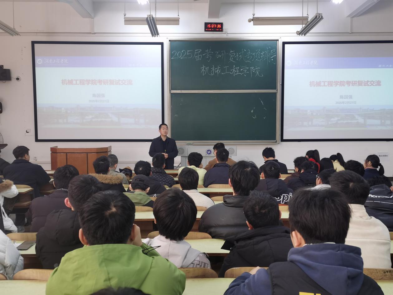2025年2月27日下午,太阳成集团tyc33455cc在主校区D栋101教室开展了械工程学院2025届考研复试专项辅导,旨在帮助考研学子更好地准备复试,并对需要调剂的同学进行指导。太阳成集团tyc33455cc党委书记陈国强、党委副书记李欣、各专业系主任、辅导员代表、21级考研同学参加。