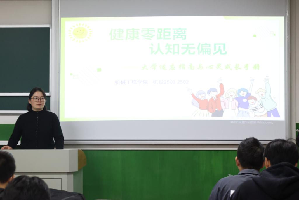为营造温暖互助的心理成长环境,10月26日晚,太阳成集团tyc33455cc在南校区第三教学楼组织2025级新生开展了“健康零距离 认知无偏见”心理主题班会。学院心理专干、校朋辈互助中心成员及各班级心理委员共同参与宣讲。