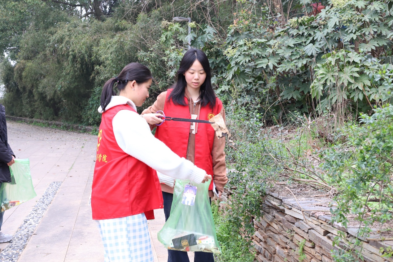 清晨的木鱼湖畔,微风徐徐,春意盎然。志愿者们手持卫生工具与垃圾袋,分工明确、密切协作,沿着湖边步道有序开展垃圾清理工作。大家仔细排查草丛、石缝及步道边缘的烟头、纸屑、塑料瓶等杂物,做到发现一处、清理一处,不放过任何一个角落。一次次俯身弯腰,一个个忙碌的身影,成为木鱼湖畔一道流动的红色风景线,也展现出新时代青年服务社会、守护自然的责任与担当。