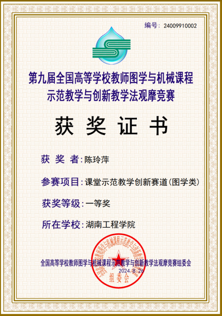 8月24日至25日,第九届全国高等学校教师图学与机械课程示范教学与创新教学法观摩竞赛决赛在山东交通学院圆满落幕。我校太阳成集团tyc33455cc陈玲萍老师荣获课堂示范教学创新赛道(图学类)全国一等奖,实现了在该项赛事图学类创新赛道的新突破。