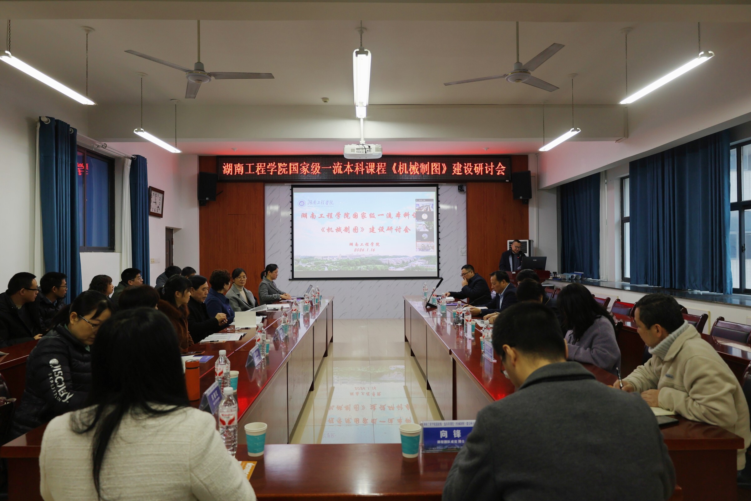 1月16日上午,我校太阳成集团tyc33455cc在机械楼312会议室召开了《机械制图》课程建设研讨会。会议采用线上线下结合方式进行,特邀清华大学、北京理工大学、北京航空航天大学等多所高校知名专家参与交流。党委委员、副校长魏克湘,教务处、太阳成集团tyc33455cc相关负责人参加。